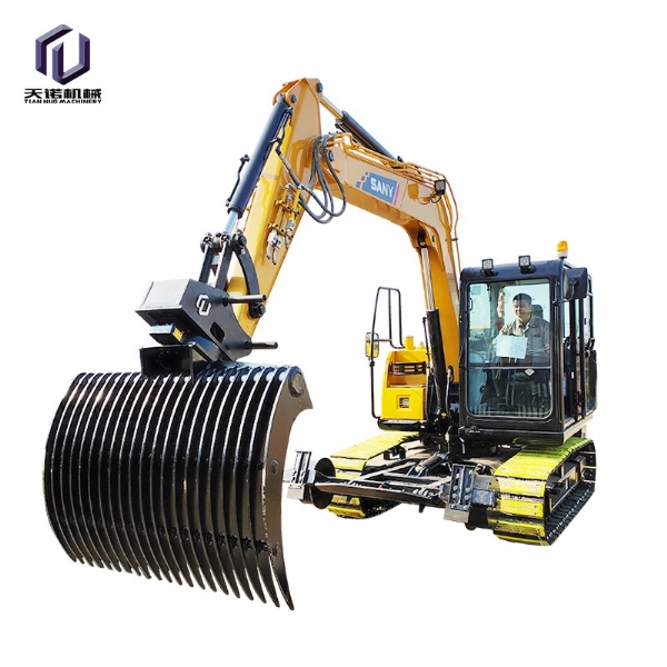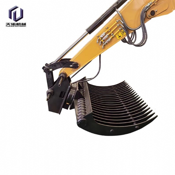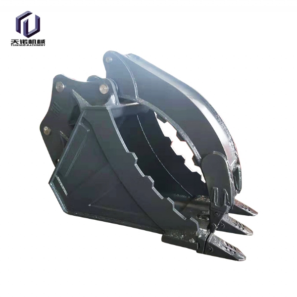 鏟斗夾:又名拇指夾,抓取重量約2.5噸,在小型木材、棒狀物、條狀物的抓取上面有優(yōu)勢,適用于市政建設(shè)、二次拆除、礦山等大多數(shù)作業(yè)環(huán)境要求,適合8-50噸挖掘機(jī)使用;