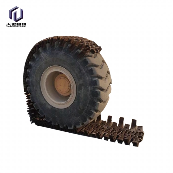 輪胎保護(hù)履帶是采用國(guó)內(nèi)外先進(jìn)生產(chǎn)工藝,利用優(yōu) 質(zhì) 合金鋼材料,經(jīng)精 密鑄造,高強(qiáng)度全自動(dòng)閃光對(duì)焊,編結(jié)構(gòu)合理,利用特殊焊接工藝焊接而成的一種輪胎設(shè)備。保護(hù)履帶耐磨性好,抗疲勞性強(qiáng),根據(jù)使用條件壽命達(dá)3000-8000小時(shí)。拆裝方便,省時(shí)省力,產(chǎn)品規(guī)格齊全,可與進(jìn)口裝載機(jī)所匹配,輪胎保護(hù)履帶,采用高科技耐磨材料制成其結(jié)構(gòu)新穎緊湊,性能穩(wěn)定,主要適用于礦山作業(yè)的裝載機(jī)、鏟車;其輪胎磨損快,使用壽命短,輪胎價(jià)格昂貴,使用成本高,將本產(chǎn)品嚴(yán)密的包裹在裝載機(jī)的輪胎上,可以有效的保護(hù)裝載機(jī)的輪胎,不被尖銳的石塊劃傷刺破,延長(zhǎng)了輪胎的使用壽命,使用一條輪胎保護(hù)履帶,能節(jié)省十條輪胎以上的費(fèi)用還能提高裝載機(jī)的工作效率和安全是礦山作業(yè)的具備品。